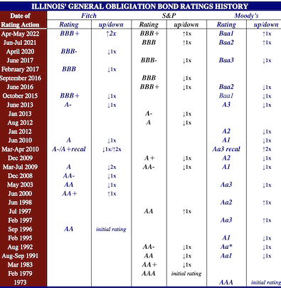 OW Lest we forget about the destruction of Illinois and the 10 downgrades during the three consecutive terms before Rauner was elected when Democrats had total control of Springfield.