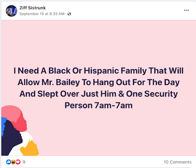 “I Need A Black Or Hispanic Family That Will Allow Mr. Bailey To Hang Out For The Day And Slept Over”