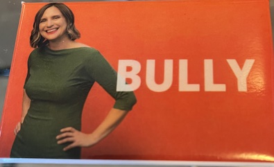 Bully-pulpit: A Hastings spokesman had responded to Walling’s claims, calling her “the bully.” The exchange prompted a number of guests at last night’s fundraiser to wear buttons with a picture of Walling and the word “Bully.”