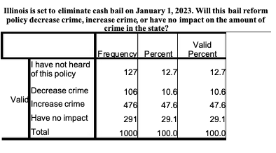 The last poll is interesting. A large plurality believes eliminating bail for some offenses will increase crime. I am not sure how that would actually work. But the antithesis sure hasn’t. Requiring bail has not reduced crime. Perhaps some Illinoisans believe criminals ask themselves, “what sort of crimes can I commit without having to pay bail?” I don’t know, but I think that’s foolishness speaking.