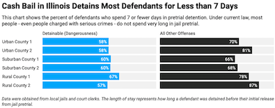 ==We don’t have statewide numbers for this. But data from a range of urban, suburban, and rural counties we’ve examined so far suggest that, under current practice, the majority of those charged with detainable offenses are released within a week.==
