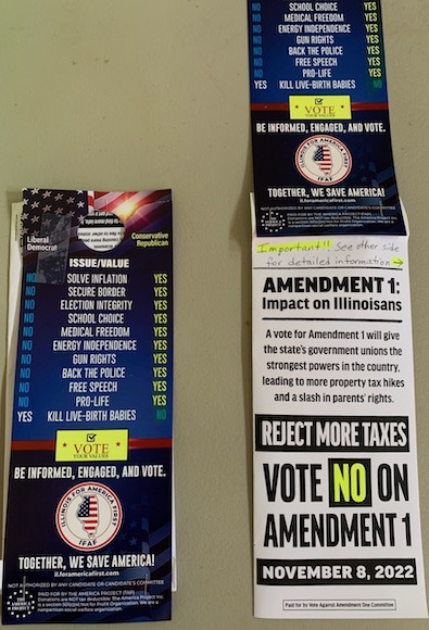 * Michael Flynn’s The America Project is leafleting in suburban Cook County and it looks like they’re piggy-backing on the anti-union group’s bandwagon…