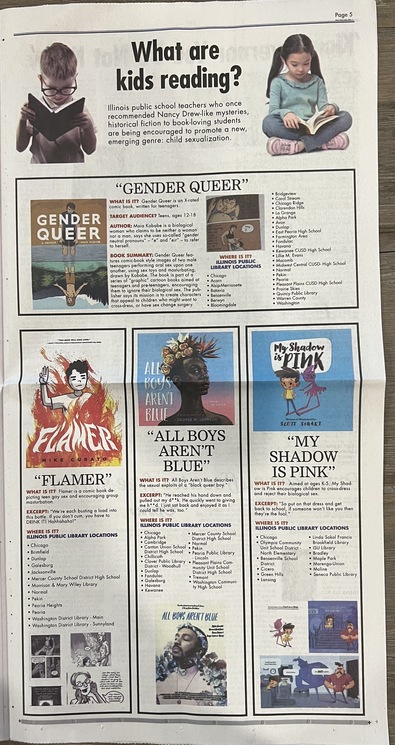 I received a strange mini paper yesterday called Sangamon Sun. Heavy with gender school themes, and SAFE-T act warnings using mug shots. Printed in Palatine P&DC (?).