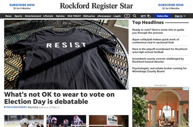 * Election day is in five days and early and mail-in voting has been underway for a while now. So, let’s look at a few front pages of Gannett websites in this state, starting with the State Journal-Register…