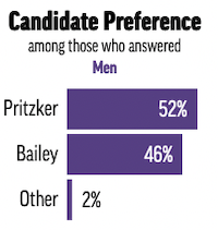 The AP’s survey of national congressional races found that 43 percent of men backed Democratic candidates while 53 percent of men backed Republican candidates. That wasn’t the case here. Pritzker won men four years ago, too.