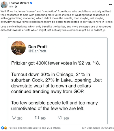 * Illinois GOP fundraising base has badly eroded over the years: It’s either jump into the far-right political bed with billionaire Richard Uihlein, or deal with the GOP’s stark fiscal reality and scramble every day to raise a few bucks here and there.