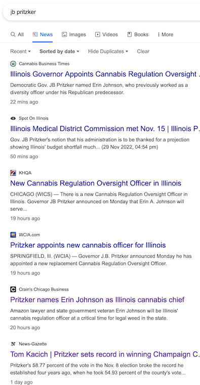 * For instance, Freespoke has a news search function, so I put it to the test. “JB Pritzker”…