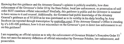He also pushed back on Attorney General Raoul, sending a letter asking if his executive order was even enforceable and how repeatedly issuing orders past the 30 day period was NOT official misconduct by the Governor. Morrison also wanted to know if officials trying to enforce it were committing misconduct because the Executive Orders did not agree with the Public Health statutes.