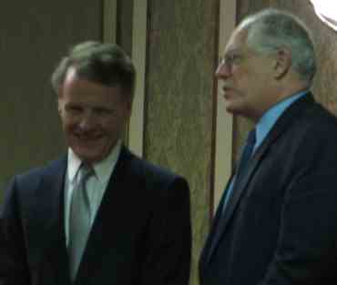 Acting Governor Quinn and Speaker Madigan enjoy a light moment outside the courtroom waiting to testify in the trial of former Governor Mil-o-rod Blagojevich.