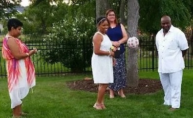 A couple of hours into the party, Marcus disappeared. He came back wearing a white suit. His girlfriend, Jackie Price, had changed from her Dallas Cowboy jersey into a white dress.