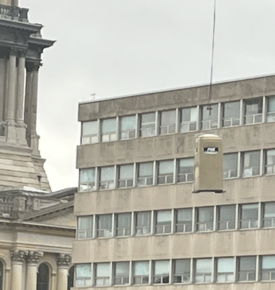 “The Stratton Building receives a much needed bathroom upgrade this afternoon.”