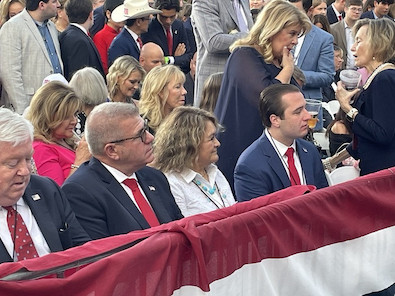 ILGOP failed ‘22 nominee for governor Darren Bailey has a front row seat reserved to hear Donald Trump on the day of his arraignment, according to this picture taken at Bedminster. He’s tracking as close to Trump as he can ahead of an expected 2024 run vs. Mike Bost for Congress.