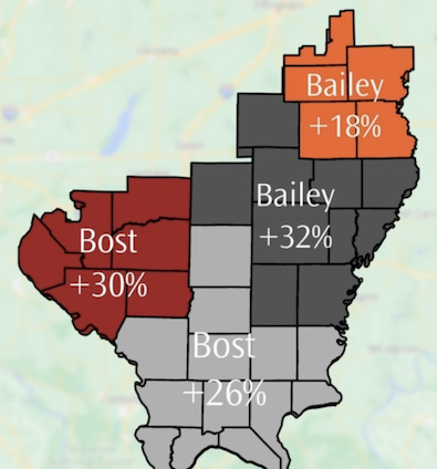 Yes, Bost is running well where the votes are. And obviously he is well known in Egypt. But he shouldn’t take much comfort in this. He’s a McCarthy guy and not known for doing anything big for his district. Egypt voters are susceptible to the Freedom Caucus message and the Bailey shtick. Fully agree on the take for each in regard to a Trump endorsement.