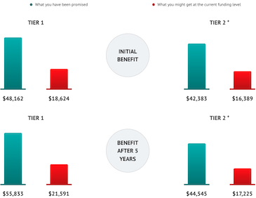 Our website includes funding ratios provided by the Illinois’ Department of Insurance, an educational course on pensions, and more information on the history of the pension system in Illinois. The graphs you mentioned were included as an example of one’s pension in relation to the funding ratio of the specific fund. We believe that the headline and the disclaimer, “The funded ratio of your retirement system will not directly correlate with the portion of your pension that you end up receiving. The likely scenario is that everybody will get their full benefits for as long as the fund is solvent. When a fund becomes insolvent, your retirement is in peril, ” make it clear that the graph is for illustrative purposes only.