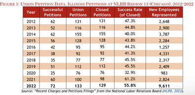 In 2022, there were 72 successful petitions to organize labor unions in Illinois, which represent 9,600 new unionized workers, the highest single-year numbers at any point in the last decade.