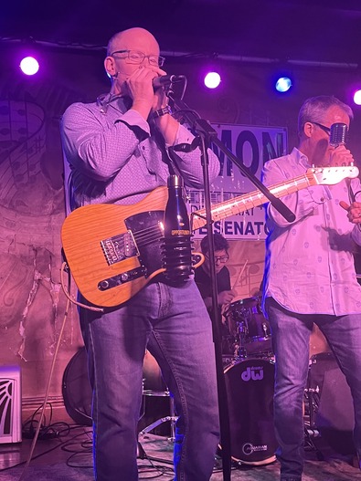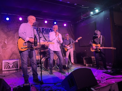 I see that Harmon has the good sense to keep his beverage in a Swirly Gig, the single most useful piece of stage apparatus since the microphone stand itself.
