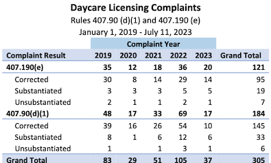 So, the reality is that 292 complaints about unlicensed teaching assistants were substantiated, and then after DCFS found problems, 240 of those were corrected. Substantiated, in this context, means that childcare providers got called out and didn’t do anything about it.