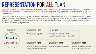 This graphic seems to indicate that the Mayor will appoint a member from a subdistrict where no candidate has been elected, and vice versa. I find both the text of the graphic and the amendment to be very confusing. This confusion does not exist in the original law.