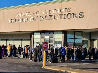 The first day of petition filing has traditionally taken on a party atmosphere, as candidates and staff line up outside the Illinois State Board of Elections office in Springfield, where the line often reaches past the Chuck E. Cheese storefront, roughly 100 yards down from the board’s entrance in the capital city strip mall.