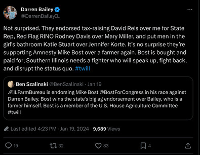 I hope Trump endorses Bost just so to see Darren Bailey’s reaction.