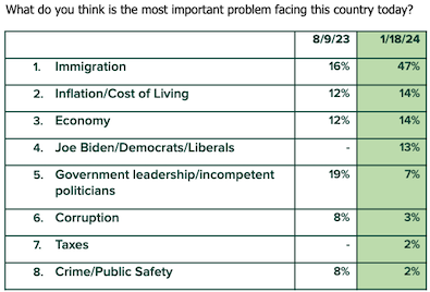 It seems a bit weird that there’s such a discrepancy between the “problem” of Biden/Dems/libs and “government leadership/incompetent politicians.” Given the respondent pool, I would have thought those two categories would be deemed to be one and the same. Clearly, they’re not.