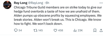 * Tribune reporters are on the picket line today, here’s some coverage from X…