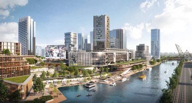 Gorgeous backdrop with the skyscrapers. The river is there too, where the area can be developed for the pleasure of fans, residents and tourists. Much more aesthetically pleasing than Bridgeport.