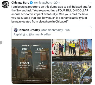 By all means let the Sox and Related build it at the 78. Let’s just get to their ask of taxpayers so it can be laughed at and move this on to the Plan Commission stage.