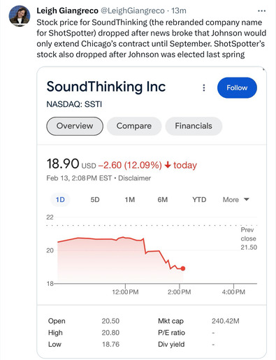 The City of Chicago will not renew its contract with SoundThinking that expires February 16, 2024, and will decommission the use of ShotSpotter technology on September 22, 2024. During the interim period, law enforcement and other community safety stakeholders will assess tools and programs that effectively increase both safety and trust, and issue recommendations to that effect.