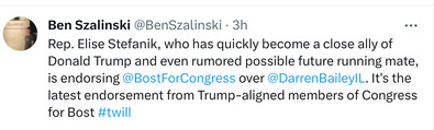 That Stefanik endorsement is surprising, considering how much she has been going out of her way to ingratiate herself with hardcore Trumpers.