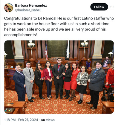 No offense to Rep. Hernandez and DJ Ramos, but a good number of Latinos and Latinas have worked on the House floor in various roles. I’m all for recognizing he’s the first to work with them, but he is in no way the first one on the floor.
