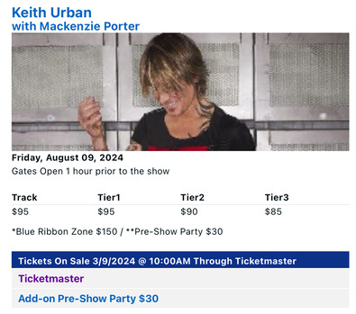 Tickets go on sale Saturday, March 9 at 10 a.m.