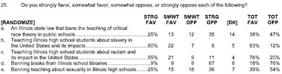 Six percent of Democrats, 21 percent of independents and 38 percent of Republicans oppose “Teaching Illinois high school students about racism and its impact in the United States.”
