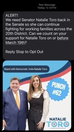 “Misleading voters is wrong, period. Natalie Toro should apologize for her latest attempt to deceive voters and retract this dishonest text message. Our campaign is proud to be endorsed by progressive champions including Senator Bernie Sanders, Congresswoman Delia Ramirez, State Rep. Will Guzzardi, and many other local leaders. In the final days of this campaign, we encourage all candidates in this race to stick to the facts and reject this kind of desperate tactic.”