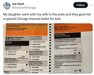Kids ballot with Fred Hampton for Director of Public Safety???? what the…. re chuy and lopez believe the donuts prohibition started a while ago. the cash is old school. Please tell me that they called not just the Board of elections but the AG’s office which has AAGs out and about. cause they sure can’t trust Kim Foxx’s ASAs to be trained in this kind of work. call law enforcement. always. campaigns 101.