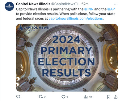 * SJ-R | Ahead of primary in Illinois, Trump renews war of words with Pritzker: Both Biden and Trump have reached the necessary number of delegates to clinch their party’s respective nomination, which will be made official at the party conventions in Milwaukee from July 15-18 for the Republicans and in Chicago from Aug. 19-22 for the Democrats.
