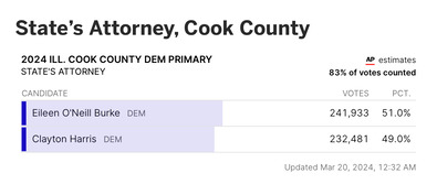 * Eileen O’Neill Burke is maintaining a close lead against Clayton Harris…
