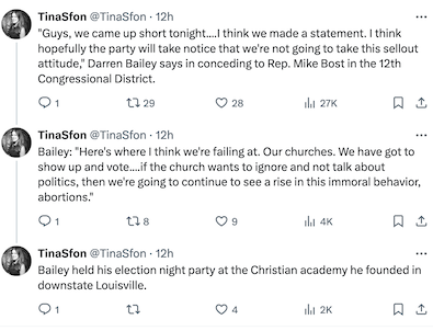 In spite of visits from Don Jr. , Matt Gaetz, and Mike Lindell, that did not sway enough voters to back Bailey. His message mixed with religious overtones has no place in politics.
