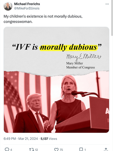 “IVF is morally dubious and should not be subsidized by the American taxpayer. It is well known that IVF treatments result in a surplus of embryos after the best ones are tested and selected. These embryos are then frozen — at significant cost to the parents — abandoned, or cruelly discarded,” the lawmakers wrote.