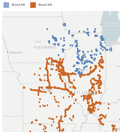 Illinois state entomologist Chris Dietrich said there are two different broods of cicadas emerging this year, one that only comes out every 13 years, and the other coming out every 17 years.