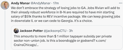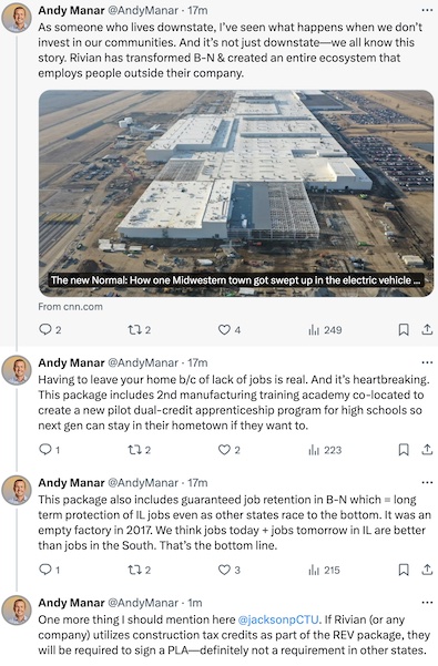 Yesterday was a win for Bloomington-Normal. Rivian has continued with layoffs in the short term but I appreciate their long term commitment to downstate Illinois and to creating high paying jobs.