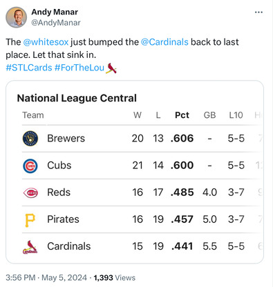 Re: Manar’s tweet. Looks like after this weekend, that means Mozeliak and DeWitt have surpassed Reinsdorf as the worst owners in MLB.