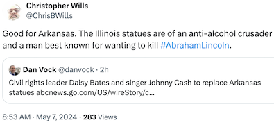 The tweet definitely glosses over both of their accomplishments throughout their lives. I’d be curious to know the story of why they both were chosen before forming an opinion. It’s interesting that Shields was chosen so long after his service…especially since he represented two different states in the Senate after leaving Illinois.