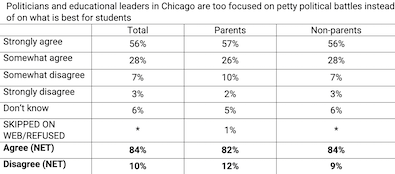 Who are the 3% who don’t think politicians and educational leaders are too focus on petty political battles? Did they mishear the question?