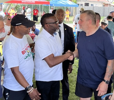 * From left are Illinois House Speaker Chris Welch, Chicago Mayor Brandon Johnson and Chicago FOP President John Catanzara at a Juneteenth event yesterday…