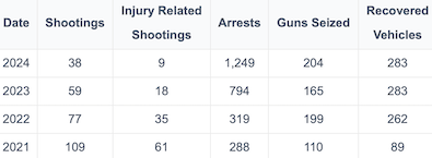 After the number of expressway shootings reached an all-time high in 2021, ISP implemented a multifaceted approach to reducing expressway shooting, including increased patrols, the creation of Special Operation Groups focused on strategic violent crime reduction missions, the use of automated license plate readers, increased Air Operations, intensive investigations, and enhanced forensic services.