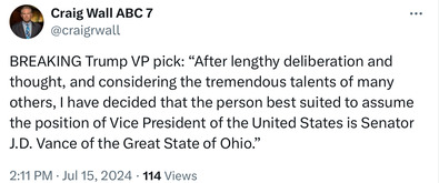 Vance has just been appointed heir to the MAGA movement by King Trump I. Let’s see what he does with it.