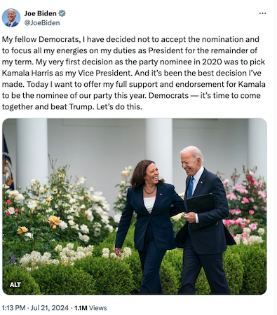 — Joe Biden (@JoeBiden) July 21, 2024