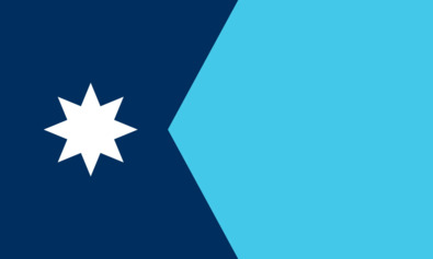 The dark blue field is the shape of Minnesota, and the light blue field represents the significance of water to the state. The eight-point star represents the North Star, which is also the state motto “L’etoile Du Nord,” and is seen on the floor of the state Capitol’s Rotunda.