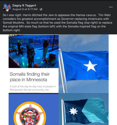 But the reason that it kind of came back to me was last month when Kamala Harris chose the Minnesota Governor to be her running mate. I noticed that he had a commission to change the Minnesota State Flag. And as much as the liberal media and everybody want to say it doesn’t look like the Somali flag, it went from a very beautiful flag, to a flag that somewhat resembles the Somali flag, given the influence in Minnesota and what the radical left is doing in that state.